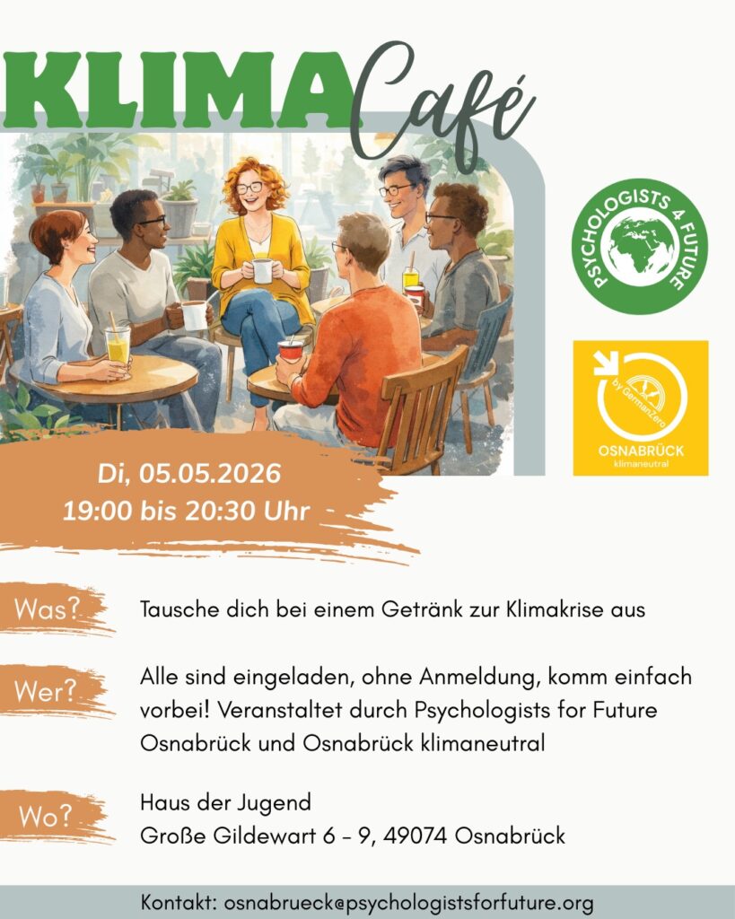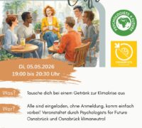 Am Dienstag, 05.05.26 laden die Osnabrücker „Psychologists for Future“ im Haus der Jugend zu einem Klimacafé ein.